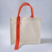 Tela de algodón de doble uso, tejido de lona de color rojo y blanco con mango y cordón, embalaje de regalo, bolsa de compras